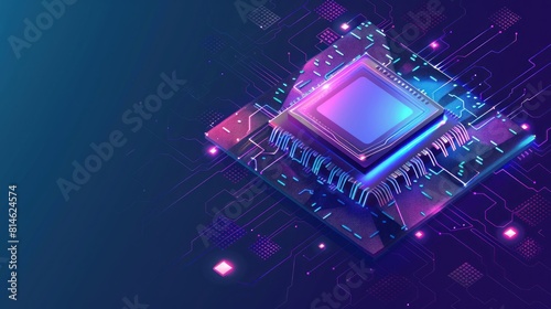 futuristic microchip, with blue lights and effects. Database, future technology concept