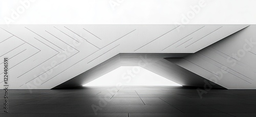 Futuristic Minimalist Architectural Design with Sharp Angles and High Contrast Lighting