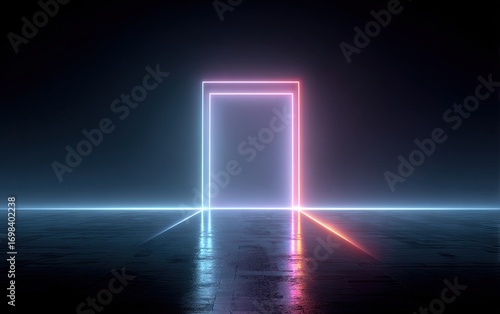 Futuristic Neon Portal Entrance Glowing Abstract Digital Gateway.