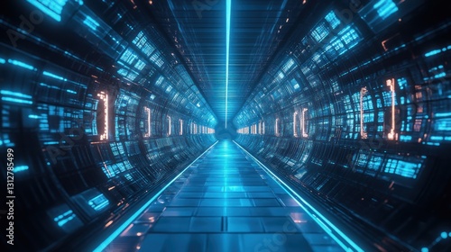 Futuristic Neon Tunnel: A Digital Corridor of Light and Technology