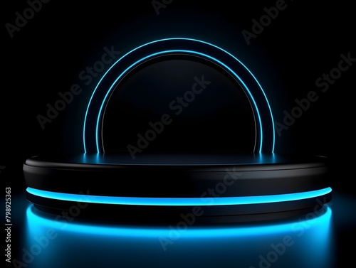Futuristic Neon-Lit Podium Platform for Product Showcase or Stage Performance