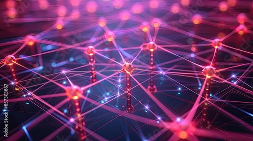 Futuristic Network Connections A 3D illustration depicting the futuristic concept of computer networking through internet technology, visualizing the complex connections and data transfer processes