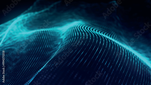 Futuristic point wave of particles. Visualization of sound waves. Technology or science banner. Abstract digital 3D wave. Vector illustration.
