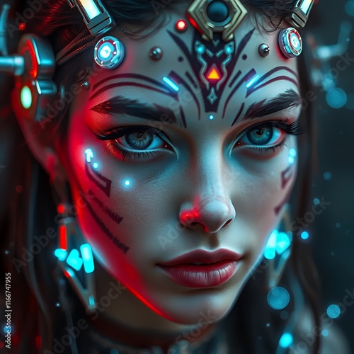 Futuristic Portraits of Cyberpunk Women: Sci-Fi and High-Tech Aesthetics in Virtual Reality Concept, Generative AI Art