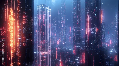 Futuristic Quantum-Powered Smart City Skyline with Neon-Lit Digital Data Flow