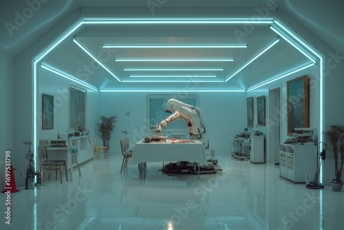 Futuristic Robotics Laboratory with Advanced Technology and Lighting