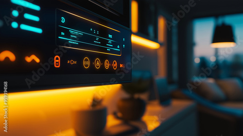 Futuristic Smart Home Control Panel with Evening Light, Showcasing Advanced Technology and Modern Design