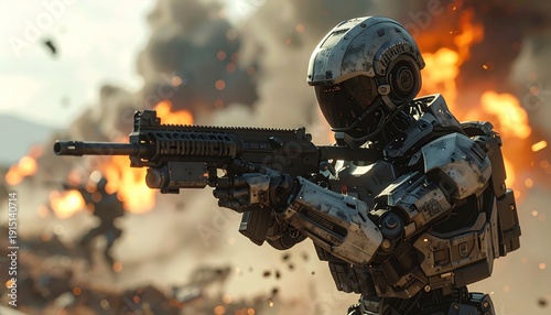 Futuristic Soldier in Action - A High-Intensity Combat Scene.