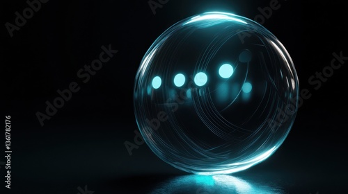 Futuristic sphere glowing in dark studio. Possible use for technology, science fiction, or abstract art