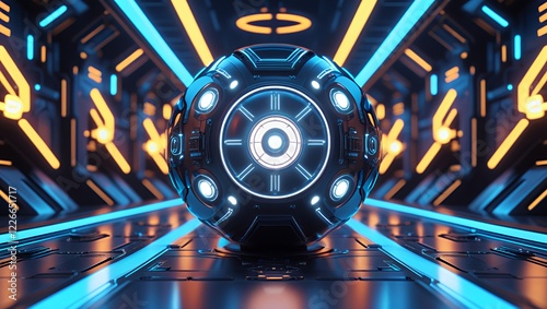 Futuristic Sphere in Neon Corridor: A Sci-Fi 3D Render