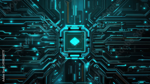 Futuristic Technology Chip with AI Mark, Advanced Circuit Board Innovation for Smart Devices and Robotics.