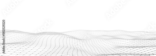 Futuristic technology wave. Digital cyberspace. Abstract vector wave with moving particles. Big data analytics.