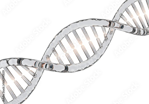 Futuristic translucent DNA double helix visualization, representing fundamental genetic research, human biological discovery, and advanced molecular science studies