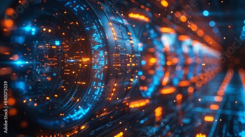 Futuristic tunnel with many lights emerging from it