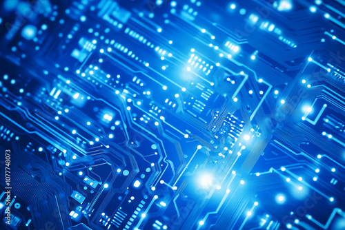 Futuristic vector illustration of a blue circuit board with intricate digital tech elements, perfect for advanced technology backgrounds.