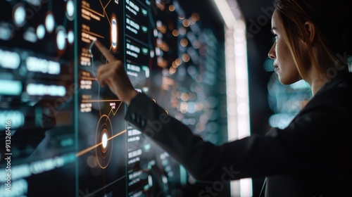 Futuristic Virtual Assistant Guiding Group in High-Tech Control Room with Holographic Displays and Advanced Technology