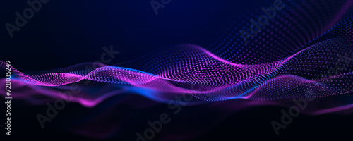 Futuristic wave of musical particles. Stream of running data. 3D rendering