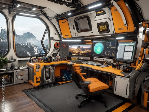 Futuristic workspace design mountain view digital studio modern environment interior concept