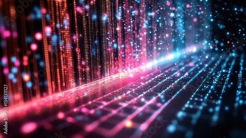 Futuristic Workspace Holographic Data Streams Radiating Vibrant Neon Pink And Blue Light
