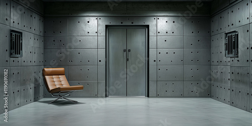 Futuristischer Gang, Raumschiff, Industrial-Style Fotohintergrund oder Vorlage für Science Fiction. Gang in einem Raumschiff