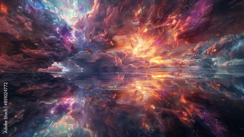 Galaxies swirl in a celestial dance reflected on a tranquil sea