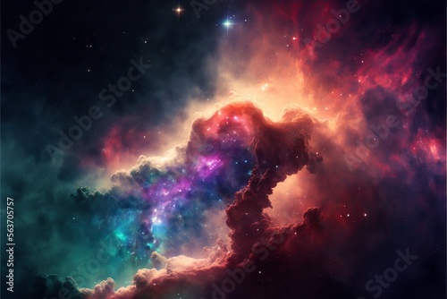 Galaxy with colorful nebula, shiny stars and heavy clouds, highly detailed Generative AI