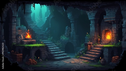 Game assets background RPG Gaming Battle Scene Underground Dungeon in Pixel 8bits 16bits 32 bits