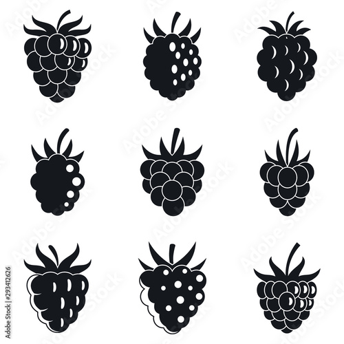 Garden raspberry icons set. Simple set of garden raspberry vector icons for web design on white background