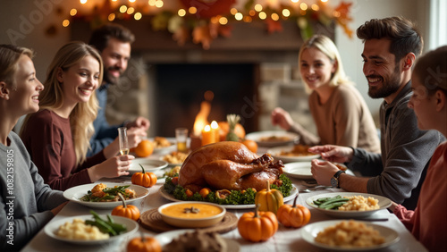 Gathering of Family and Friends for a Festive Thanksgiving Feast Filled with Gratitude and Joyful Memories