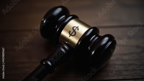 Gavel with Dollar Sign on Gold Band Close Up Judicial Auction Concept Finance Law