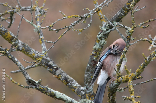 Geai des chênes perché sur un arbre, Garrulus glandarius