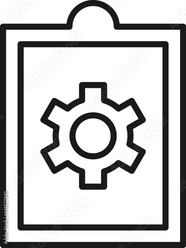 Gear on Clipboard Isolated Line Icon. Perfect for web sites, apps, UI, internet, shops, stores. Simple image drawn with black thin line