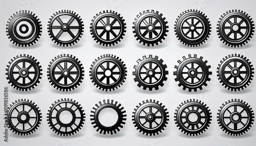 Gear set. Black gear wheel icons on white background - stock vector.