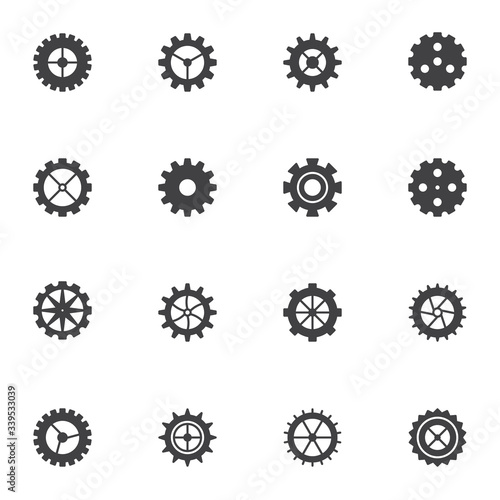 Gear vector icons set, modern solid symbol collection, filled style pictogram pack. Signs, logo illustration. Set includes icons as cogwheel, settings cog, clock mechanism