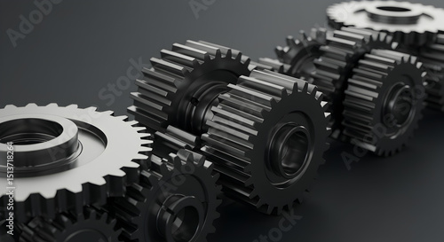 Gears on a gray background, industrial machinery concept