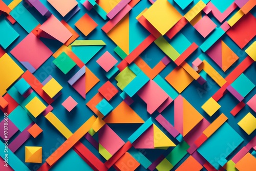 Generate a vibrant background featuring a mix of geometric shapes in bright, contrasting colors