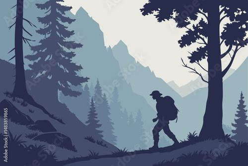 Generated AI Mountain Forest Silhouette Dramatic Hiking Scene