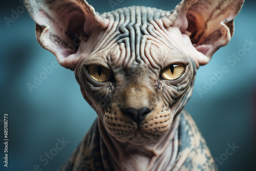 Generated by AI picture modern style sphinx cat with pattern on skin many tattoo