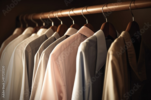 generated illustration group of shirts hanging on rack in a row
