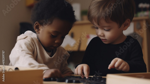Generative AI, children, boys and girls of different nationalities play together, friendship of peoples, Europeans, African Americans, Indians, Asians, Chinese, kindergarten, diversity