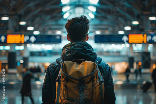 Generative AI composition image of traveling concept young person woman man at airport bus railway station
