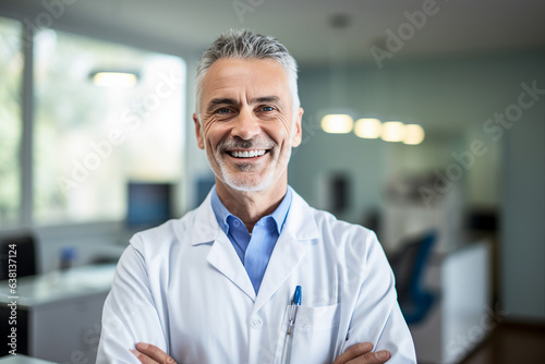 Generative AI portrait of confident professional worker doctor in dental clinic office concept of healthy teeth