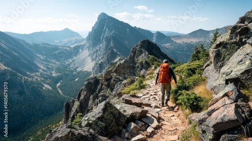 Generic Hiker Crossing Overview Mountain 9it2h2h Rocky