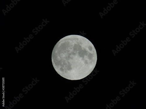 Genova, Italy - 09/25/2020: An amazing photography of the full moon over the city of Genova by night with a great clear sky in background and some stars