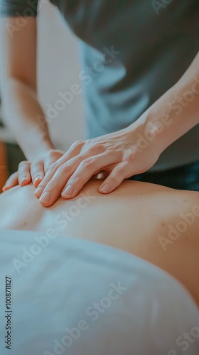 Gentle massage therapy session, focusing on relaxation and wellness, with skilled hands working to relieve tension.