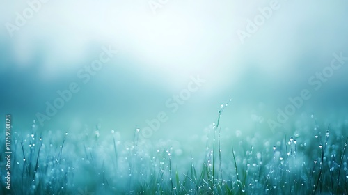 Gentle Morning Dew on Meadow with Open Sky for Text
