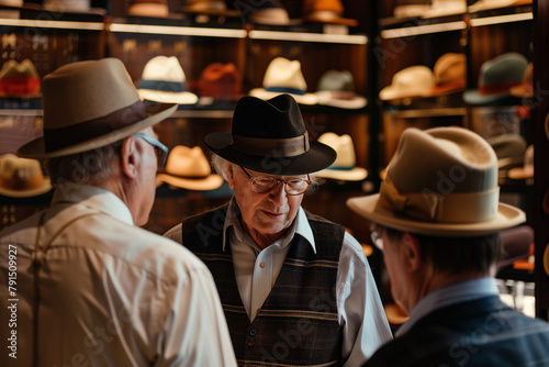 Gentlemen at a Traditional Hat Fitting in a Classic Hat Store