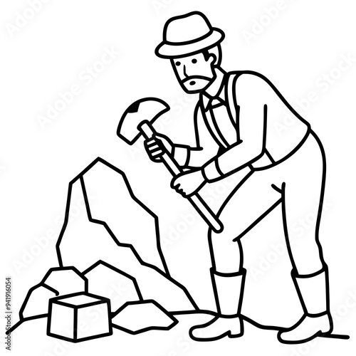 Geologist at Work Rock Examination with Hammer