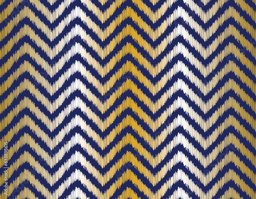 Geometric ethnic oriental ikat pattern design. Design for wallpaper, fabric, clothing, carpat, scarf, rug. Ikat background. Tribal gold gradient weave pattern. Abstract background.