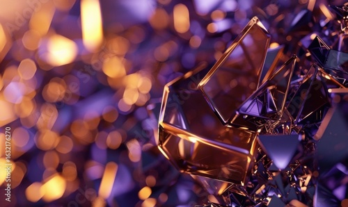 Geometric facets jewel tones abstract background texture with bokeh highlights